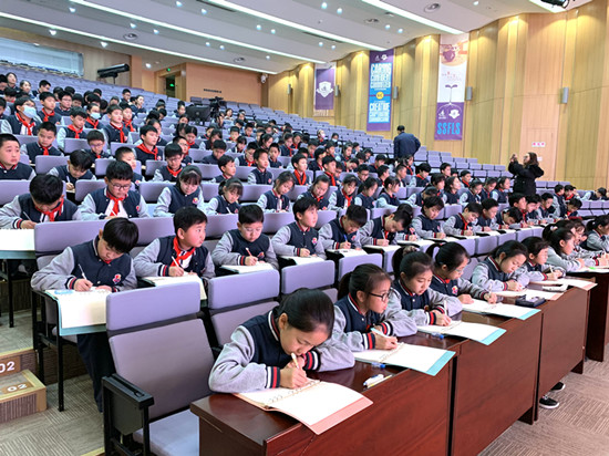 报告厅举行了年级集会“高年级英语学习的好方法”。请来了六年级的优秀学