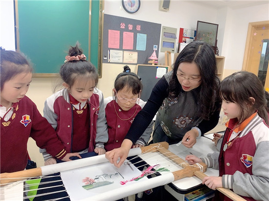 邹子煊妈妈姚红英女士和张晏玮妈妈邹谢英女士协同团队给孩子们带来了一堂精彩的刺绣课堂,作为高级工艺美术大师的她们带领孩子们走进了传统文化,了解了刺绣的起源发展,走进了四大名绣。