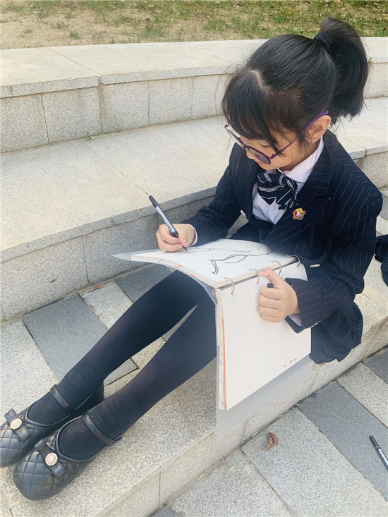 在写生的过程中,杨老师耐心地为每一位同学进行指导,让孩子们能将眼睛看到的大树完整地呈现在画纸上。