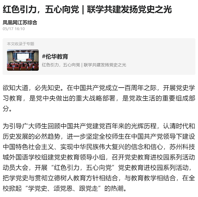 【凤凰网江苏综合】红色引力,五心向党 | 联学共建发扬党史之光
