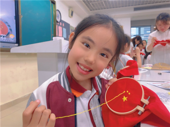 今年是中国共产党成立的100周年,童心向党,孩子们今天共绣国旗。小淑女们通过一针一线绣制国旗,歌颂亲爱的祖国。