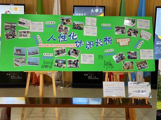 强基融合一G班的小朋友在游戏中发现问题、提出设想,以如何为恩顾山公园设计更具人性化的休闲长椅为主题,融合数学、语文,英语等学科知识,在通过问卷调查、统计分析、实地考察和构思设计后,他们动手制作出了一把把个性鲜明、实用性强的休闲长椅。生活处处有学问,多一份细致,持一颗探索之心,我们就能给这个世界带来不一样的光亮。