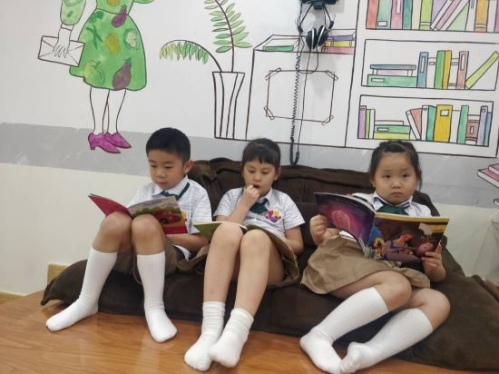 有时在午间阅读时间,倪老师会带着小朋友们去图书馆看更多的书。图书馆的书籍种类繁多,有有趣的漫画书,也有精彩的绘本故事书,当然也会有双语读物,让孩子们得到更好的语言浸润学习环境。置身于书海的同学们,一个个都开始旁若无人地,专心致志地畅游在知识殿堂啦!