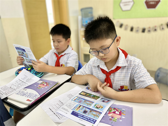 又到了每周孩子们最爱的英文阅读时间,孩子们认真阅读着英文报纸,他们尽情且自由地遨游在一个精彩世界中。时而发出‘咯咯咯’的笑声,时而认真用笔划出重点内容,时而皱着眉头用心思考阅读到的问题。