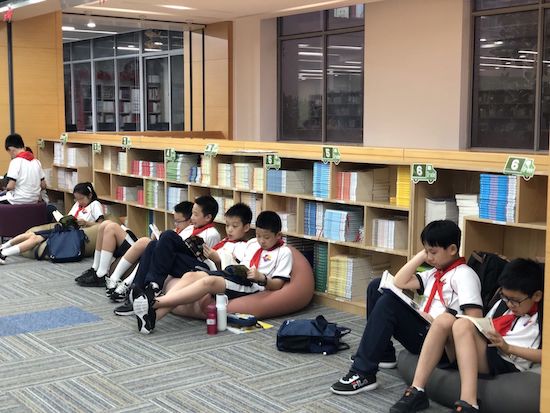 在读完之后,还可以悄悄的与同学分享所得。看累了,还可以看看绿植,放松下眼睛,孩子们非常开心。