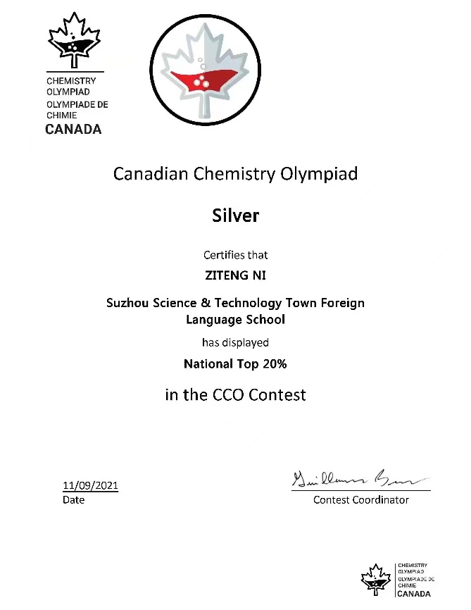 ●2021加拿大滑铁卢大学阿伏伽德罗化学竞赛全球前10%