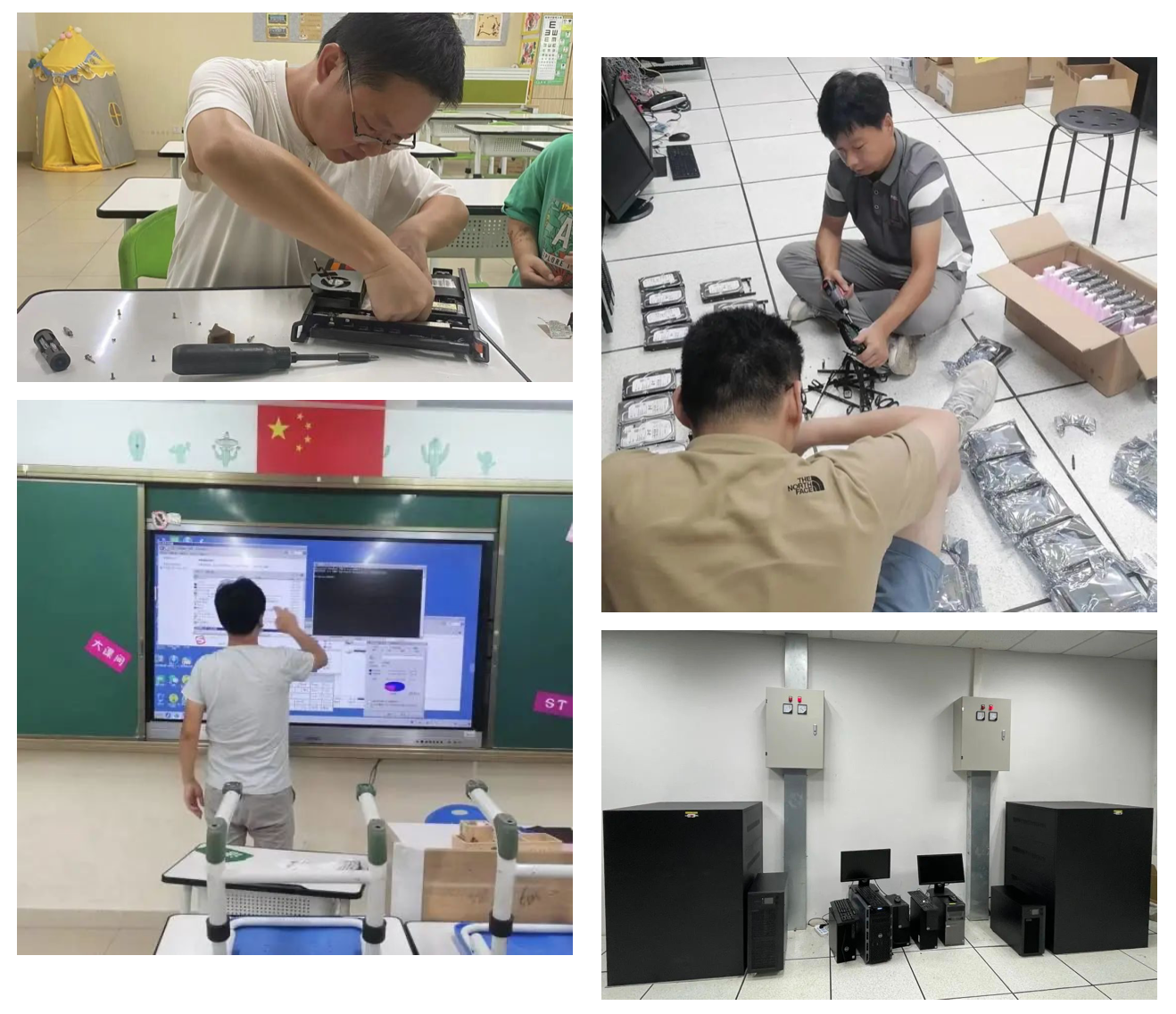 开学伊始,为保障网络安全,他们完成了近200台教学一体机的检修,近150米电子围栏及多路监控探头的安装,300TB监控存储的扩容,更换老化UPS设备及改造线路至深夜。