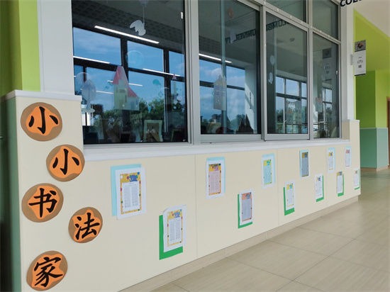 高梦羲-阅读走廊:老师们好,这是我们的书法展,虽然现在还不够好看,但我们会继续努力的。这边是我们的阅读走廊,漂亮吗?