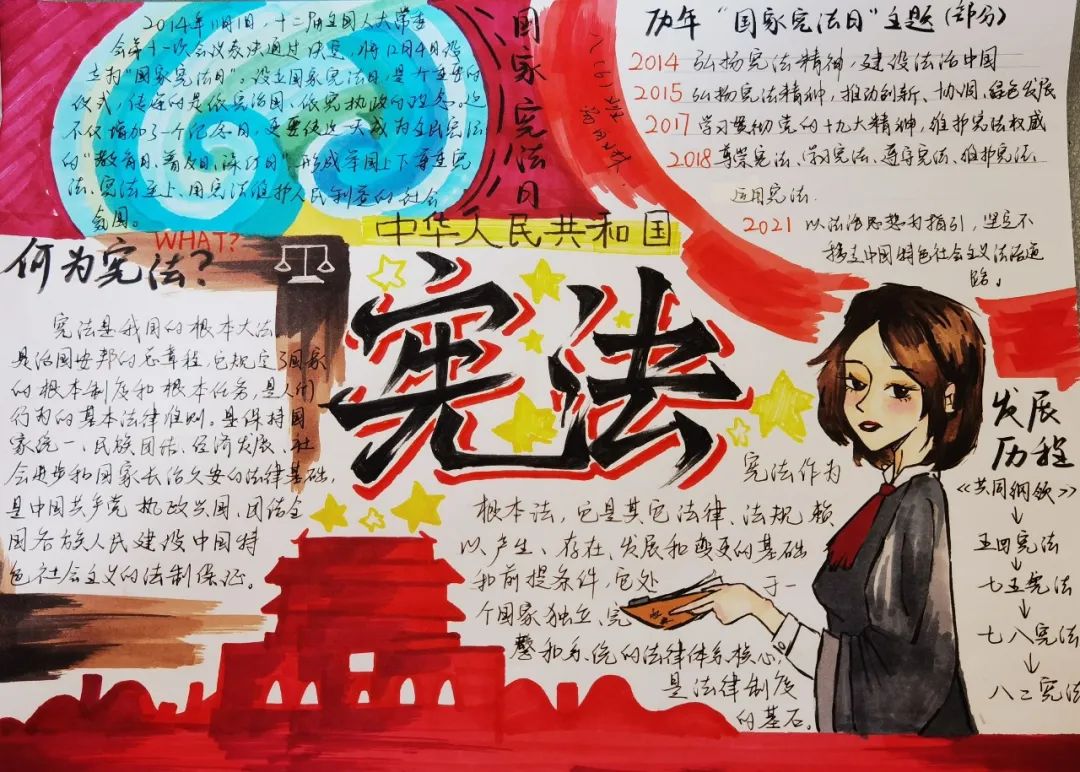 基于新课标的解读与落实,以“打牢铸魂育人根基,落实核心素养培养”为目标,开展宪法小报制作,更加深入领会国家法律精神。