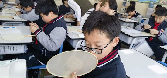 在老师的带领下,孩子们一边聆听发绣的历史,一边体验穿针引线的乐趣,沉浸在发绣这一非遗文化中。孩子们感受到了文化艺术的魅力,加深了崇善向美的决心。