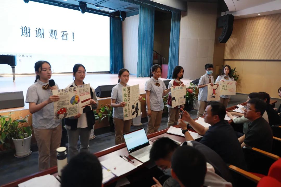 微课题结题大会上,课题组全员上台,以演讲、海报、模型、游戏、情景剧、采访视频等多样态分享研究成果,彰显课题特色、科研实力。同时参与现场答辩,细节之处,彰显“6C”素养、智慧之光。