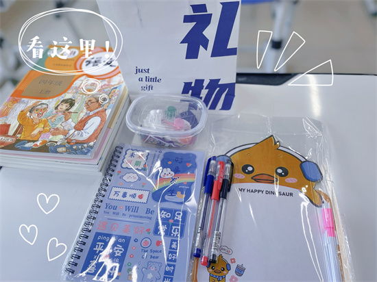 此外,老师还精心准备了开学礼物:作业登记本、中性笔、白板、石膏娃娃,每一份礼物都蕴含了老师满满的期待和祝愿。