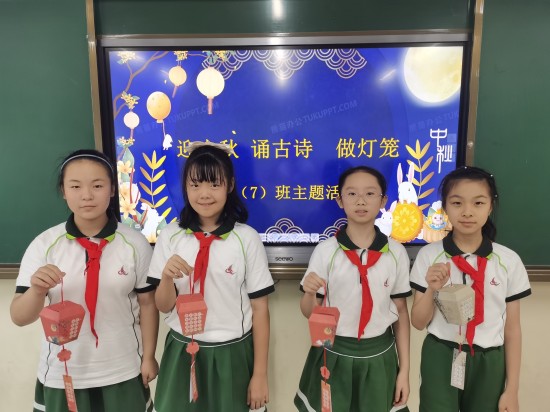 为庆祝小学阶段最后一个中秋节,六(7)班举办了“迎中秋,诵古诗,做灯笼”的活动。(图2、3)