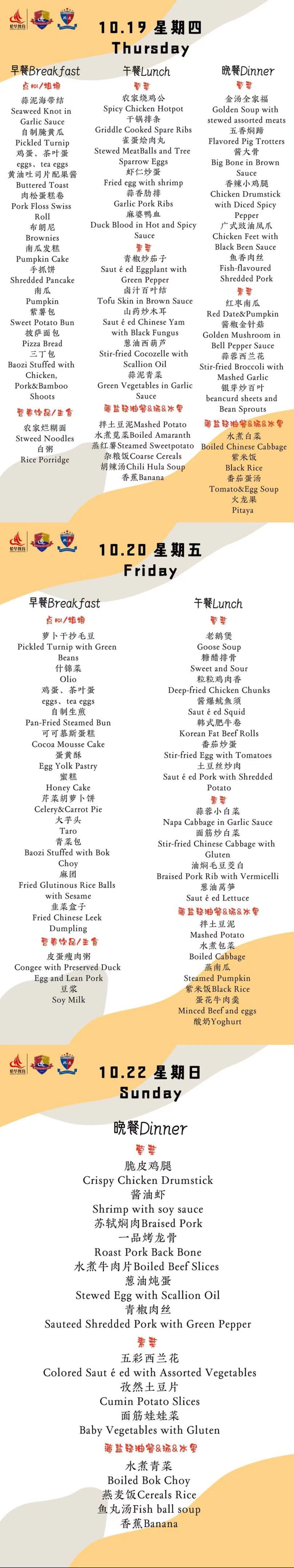 舌尖上的科外&科中丨本周菜单出炉!(10.16-10.22)