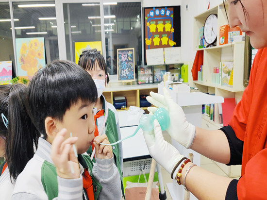除了可以欣赏到精彩的吹糖表演,同学们还可以亲自动手体验。大师手把手地指导大家如何掌握吹糖的技巧,让这传统手艺在现代校园焕发出新的生命力。