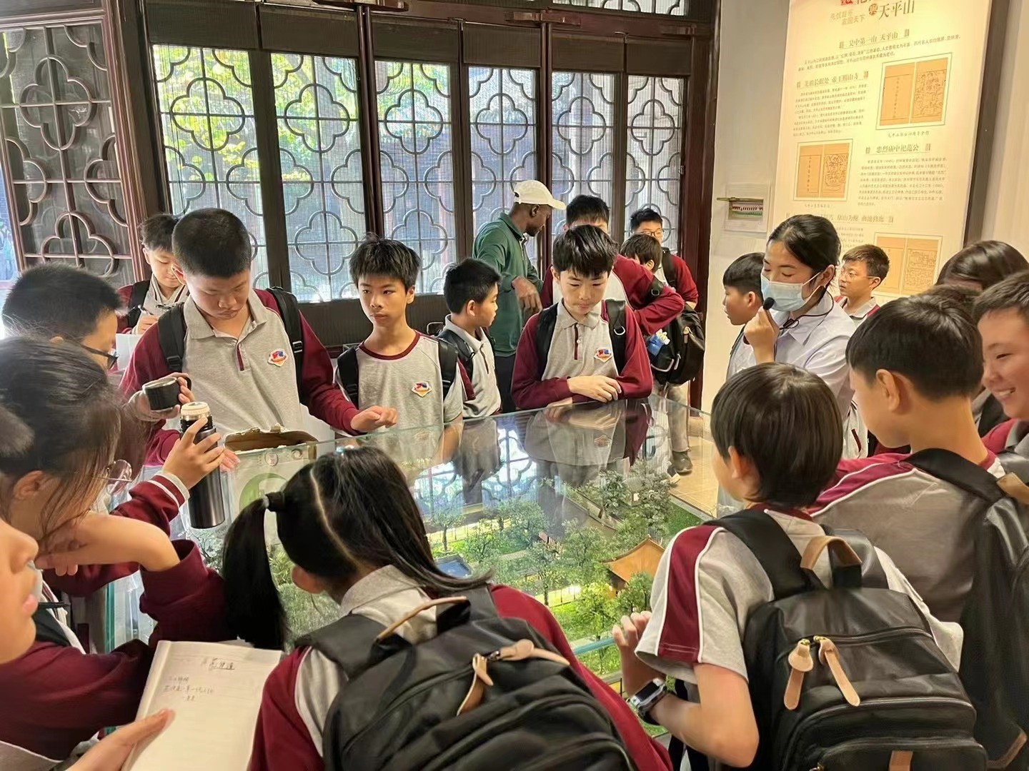 天平山,中国四大赏枫胜地之一。人间朝暮,叶落惊秋,一场青黄橙红紫的美丽变身在这里呈现,绘就了层林尽染的姑苏秋景图。第一单元MYP语文课程中,我们设置为“体悟散文之美”的探究单元,在此背景下,11月3日,IB MYP六年级和七年级走进天平山,开展研学活动。师生共同临摹,范仲淹之《岳阳楼记》;欣赏漫山遍野层林尽染之枫叶红;感悟“先天下之忧而忧,后天下之乐而乐”之胸襟情怀。这与IB learner profile培养者目标不谋而合,做一个caring学会关爱,open-minded胸襟开阔的,knowledgeable知识渊博的,inquirer愿意探究的世界公民。