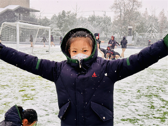 在银装素裹的冬季,强基融合四10班的小淑女们在操场上尽情地享受着雪天的乐趣。