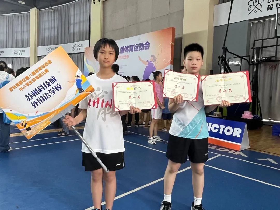 在师生的共同努力下,体育组在市级比赛中硕果累累,阳光联赛中,国际象棋苏州市第一名;篮球赛区亚军,第三;啦啦操比赛苏州市第二;足球区长杯亚军,挺进市长杯,让我们在竞争激烈的高新区足球强队中占有一席之地突破校史最好成绩;游泳、乒乓球、击剑也是收获颇丰,包揽前三名。除此以外,我们还获得以下荣誉:本学期我校成为首个苏州市空手道考级点和训练基地的学校;成功申办苏州市体育传统(特色)学校;零点体育社团荣获区“优秀学生社团”称号。