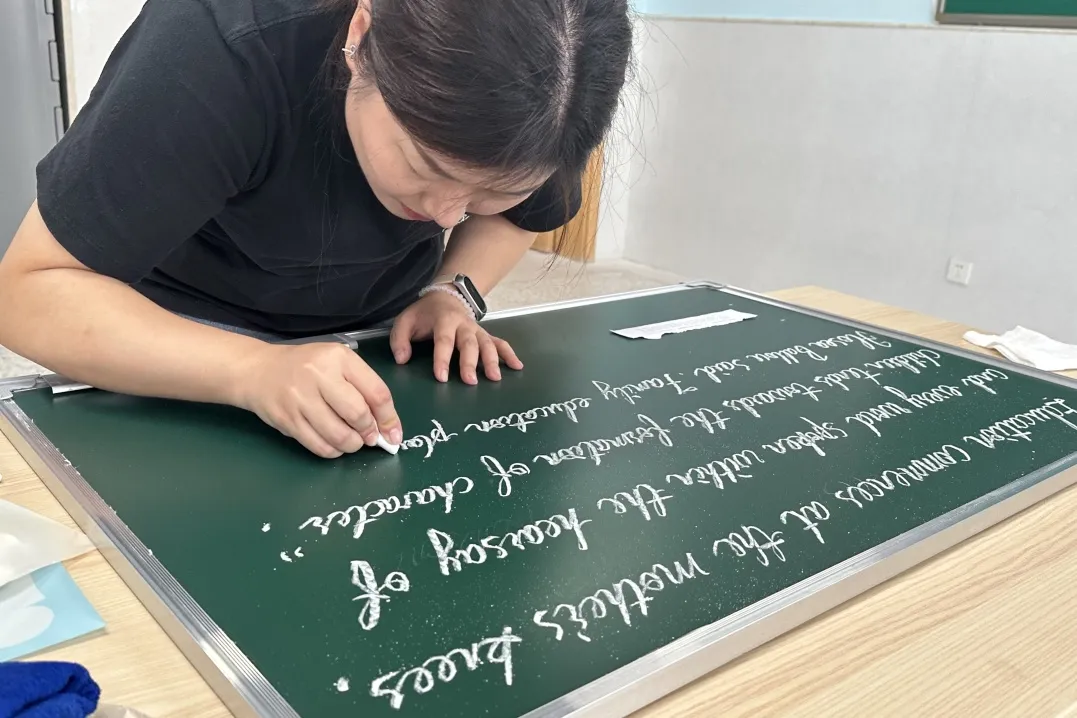 在入职的第三年,她作为学校代表参加高新区初中英语教师基本功大赛,开启了为期大半年的“工作+比赛”的模式。她克服了一名初三教师在繁忙教学上的挑战,全力以赴投入赛前集训与备赛模拟,日常做题与粉笔字练习。