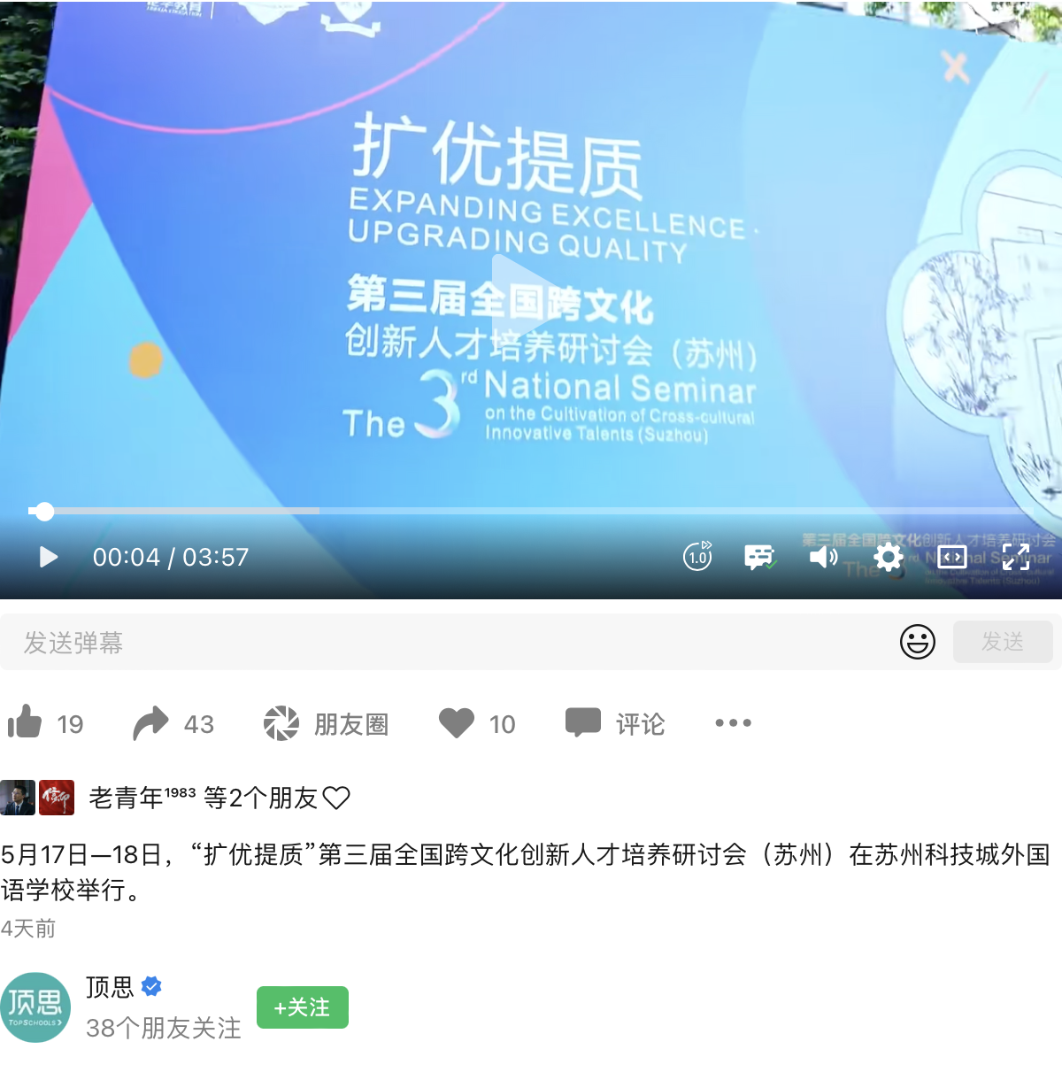 【顶思】5月17日—18日,“扩优提质”第三届全国跨文化创新人才培养研讨会(苏州)在苏州科技城外国语学校举行。