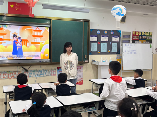 二5班家长支邺妈妈给孩子们带来了不一样的课程《诗词里的体育运动》,读诗词猜运动,由卢纶《塞下曲》猜射箭,王维《寒食城东即事》猜蹴鞠,紧接着捶丸、投壶、冰嬉、马术、龙舟、跳水、围棋、武术等古代体育运动浮出水面。知晓了许多古代体育运动,武术的礼仪和精神也要传承,支邺和支邺妈妈向孩子们展示抱拳礼的标准动作。孩子们是快乐的,可以边读古诗词,边由隐藏的线索进行猜测,还可以在桌子上玩抓沙包游戏。孩子们是幸福的,获赠了《每日一诗80首》、毽子、沙包,还解锁了各种抓沙包游戏的方法。