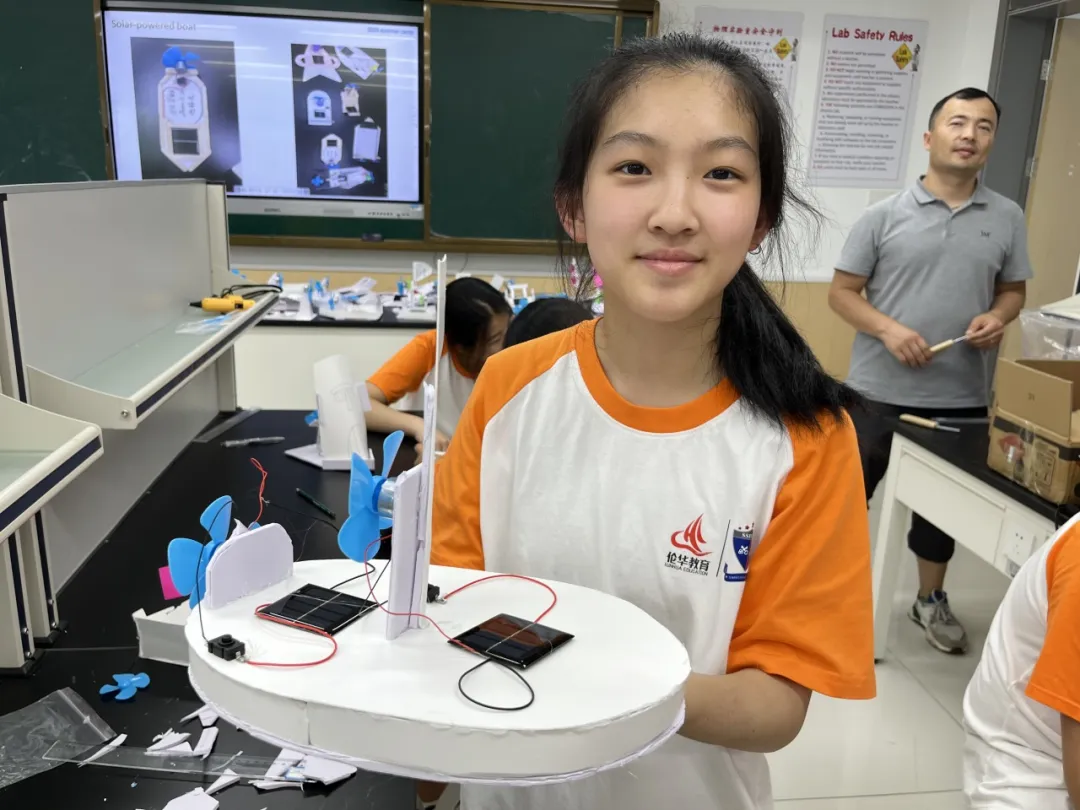 老师还带领学生设计和制作太阳能动力小船,这不仅点燃了他们对物理学的浓厚兴趣,还锻炼了他们的动手能力,让他们在创造各种形状、独具特色的小船时,深刻理解太阳能这一未来能源的巨大潜力和研究价值。