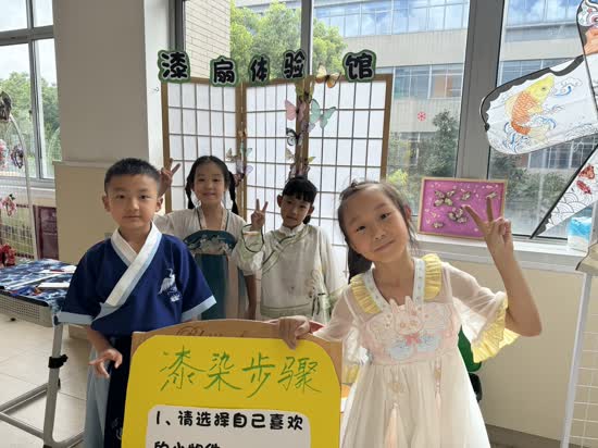 此外,同学们还亲手制作了一些非遗手工艺品,如精美的纸鸢、好看的漆扇。这些作品不仅展示了他们的才艺,也为班级增添了不少色彩。