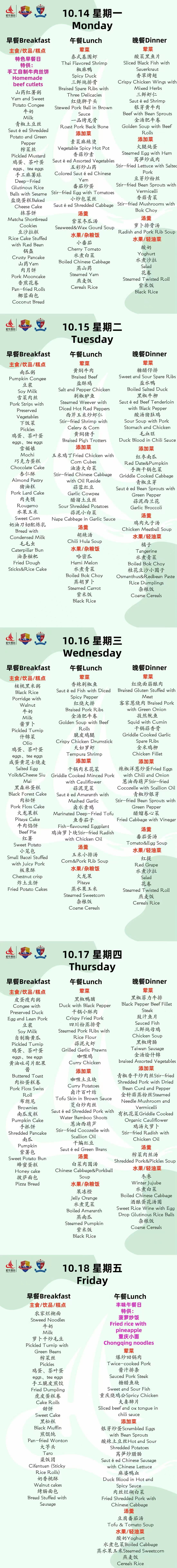 舌尖上的科外&科中丨本周菜单出炉!(10.14-10.18)