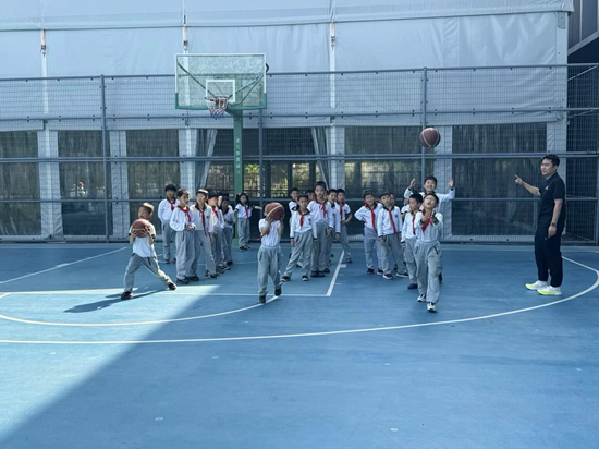 活动一开始,倪教练向孩子们介绍了篮球的基本知识,包括不同型号篮球的适用年龄、篮网的发展历史以及篮球比赛的得分规则。孩子们听得津津有味,纷纷举手提问,展现出对篮球运动的浓厚兴趣。随后,倪教练带领大家进行了实际操作训练。孩子们分组练习了原地投篮、双手抛球等基础动作,倪教练耐心地纠正每个孩子的姿势,鼓励他们大胆尝试。尽管有些孩子是第一次接触篮球,但他们在教练和老师的鼓励下,逐渐掌握了技巧,脸上洋溢着自信的笑容。