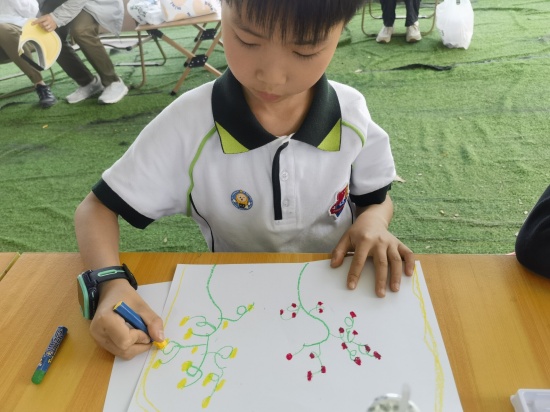 绘画环节,班级的“视觉艺术”特色被展现得淋漓尽致。孩子们拿起画笔,将心中的番茄王国尽情描绘。画纸上,每一幅画作都是孩子们独特内心世界的展现,也是他们对这次番茄之旅的美好诠释。