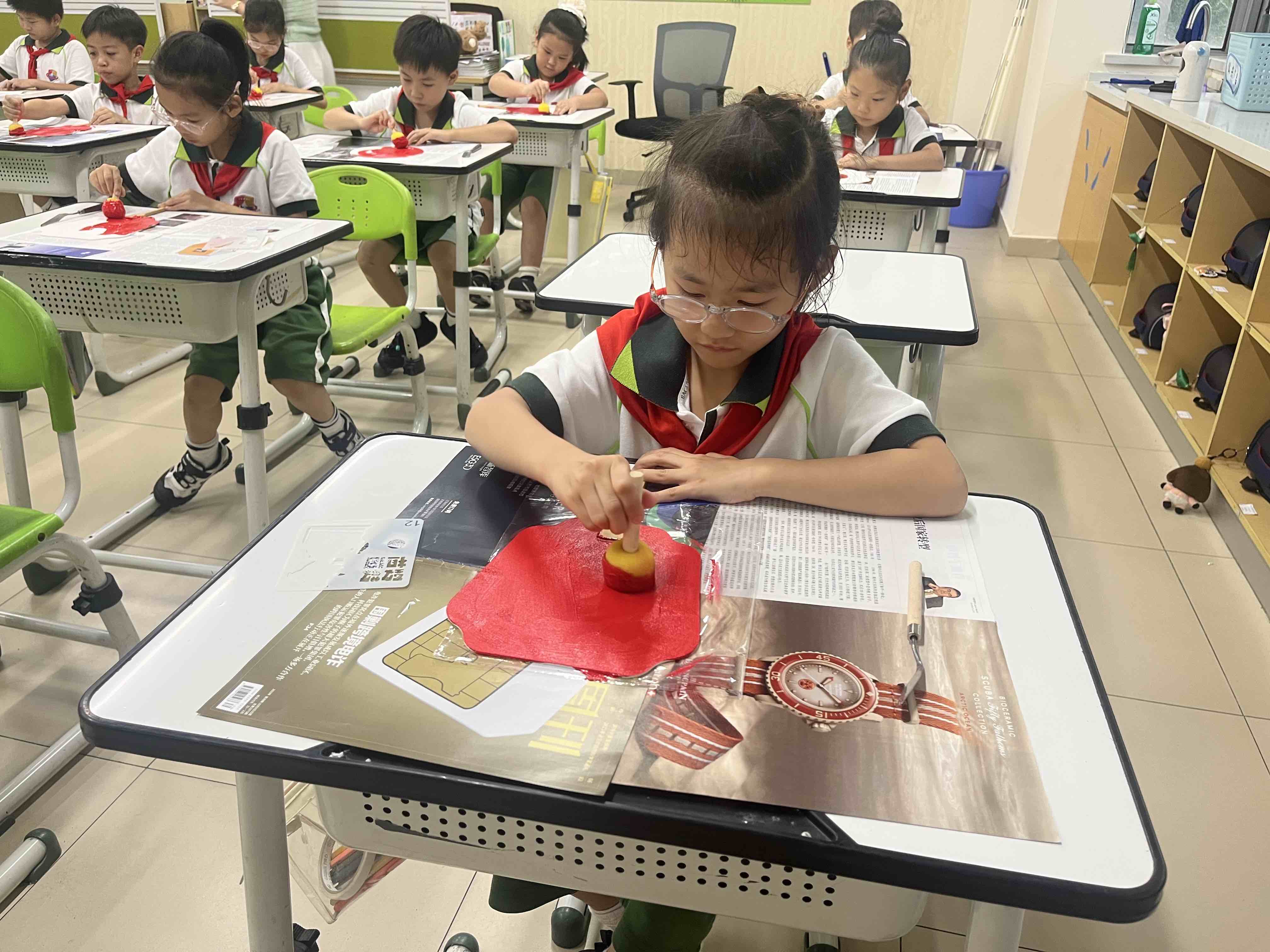 好的国庆佳节即将到来,让孩子们在动手中感受节日氛围,二10班周启政妈妈和孙天沐、陆天杰妈妈来到班级,走进课堂,带孩子们制作 “国庆主题拓印团扇”。活动中,两位妈妈耐心讲解国庆节的小知识,演示拓印技巧。孩子们可以亲手将鲜红五星、天安门、祥云等图案拓在扇面上,一笔一画都是对祖国的祝福。在互动中,既体验传统手工的乐趣,又种下爱国的种子。