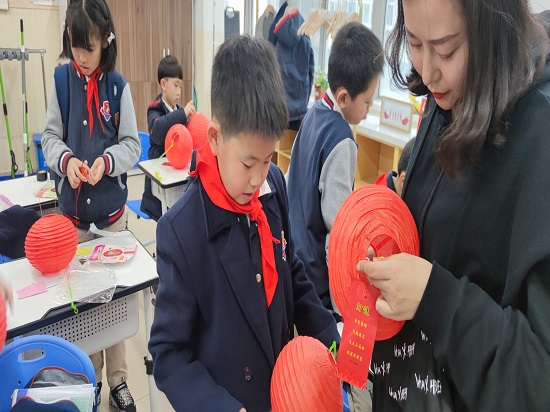 家委会温柔的妈妈们为每个孩子准备了大红灯笼,孩子们亲自动手,自主完成。