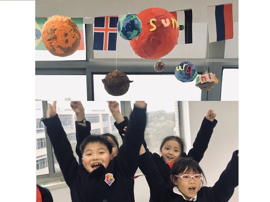 完成海报后,小组合作,利用塑料球和彩泥等工具进行了太阳系的制作。整个活动,孩子们兴致盎然,玩中有学,结合团队的力量,取长补短,用心制作,创造了自己的星球。