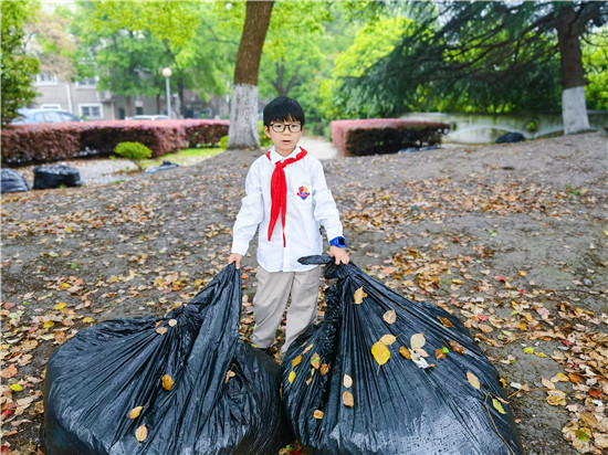 看,有的同学给环卫阿姨扫了整整两大包树叶;有的同学正在帮分类处爷爷打扫卫生;有的同学二话不说直接帮忙,干得专心致志;有的同学则忠于自己的岗位,为邻居们耐心解答……