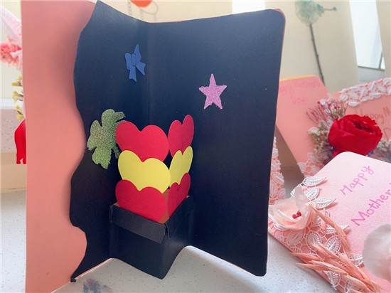 她们先挑选了为妈妈喜欢的颜色,选好主花与其他搭配的干花后,剪出别致的蕾丝花边,孩子们在蕾丝上摆出妈妈喜欢的模样,然后写上温馨的祝福,精致的贺卡饱含对妈妈的爱与感恩。