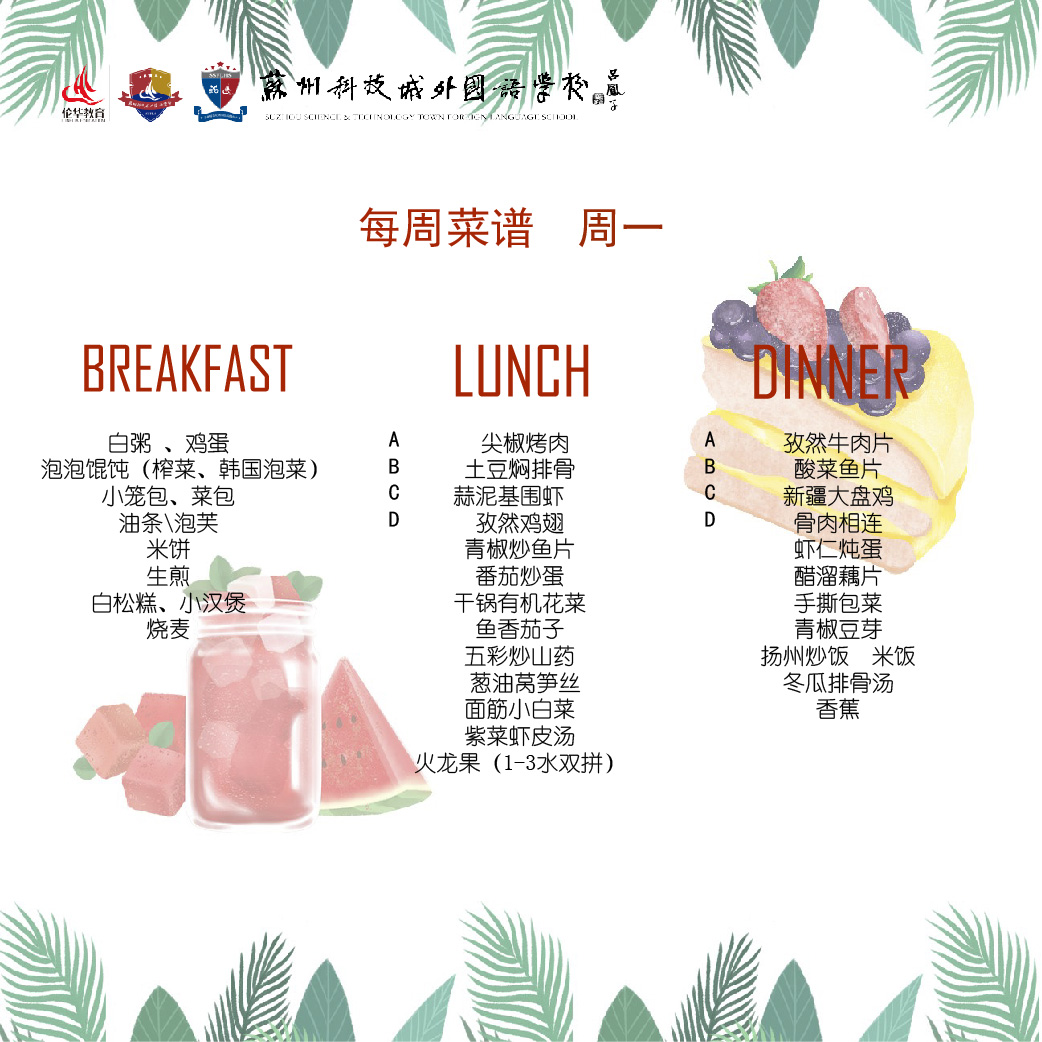 苏州科技城外国语学校6月21日至6月25日菜谱