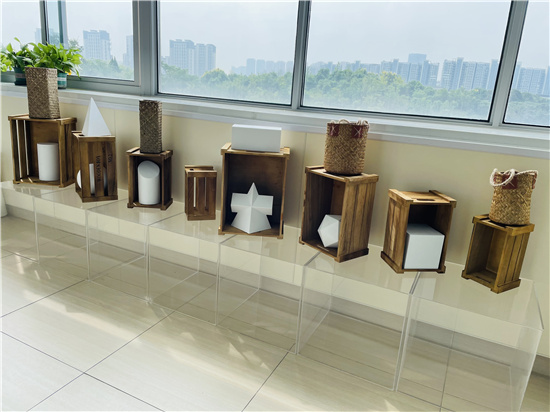走廊这一侧风格独特的摆件,这些特别的“小玩意儿”,为班级增添了艺术气息。