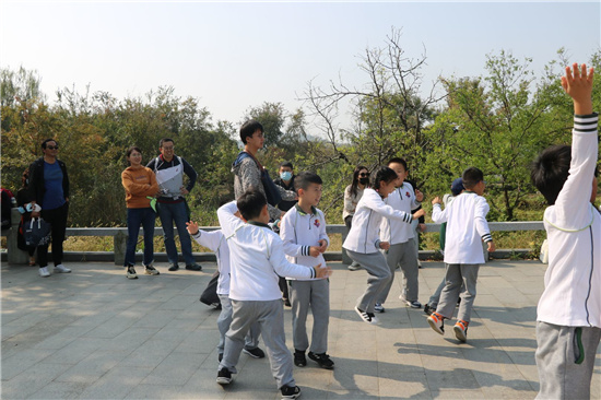 先玩了一些热身小游戏,我们就准备爬山啦!这次爬山也是不走寻常路啊,石峭陡立,孩子们却一马当先,比我们大人勇敢多了!