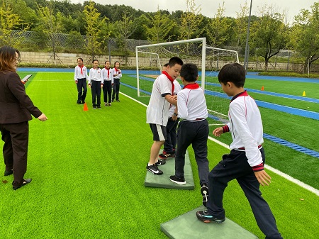 趣味团体赛上,我们50米迎面接力一路领先,将优势坚持到最后。跳羊角球,孩子们一步一个脚印,不气馁,有鼓励,最终圆满完成任务。摸石头过河我们更是协作有加,最终取得第三名的好成绩!