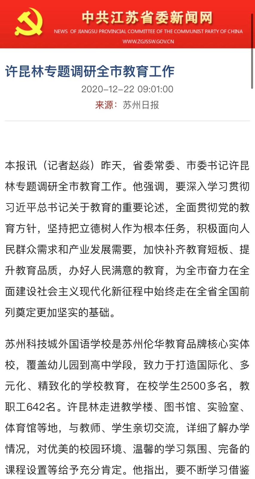 【中共江苏省委新闻网】许昆林专题调研全市教育工作