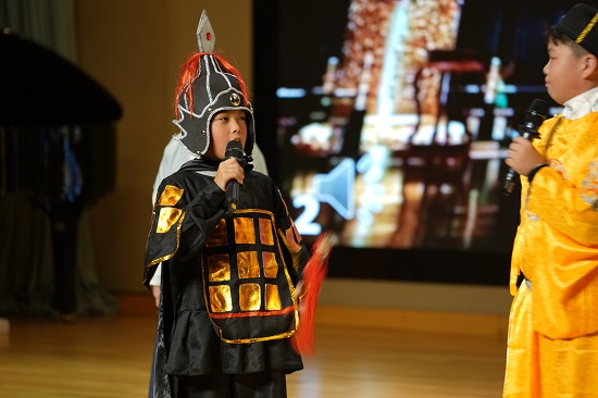 四年级4班的孩子们,趁着戏剧嘉年华的东风,穿上唐装汉服,也随之一键穿越。