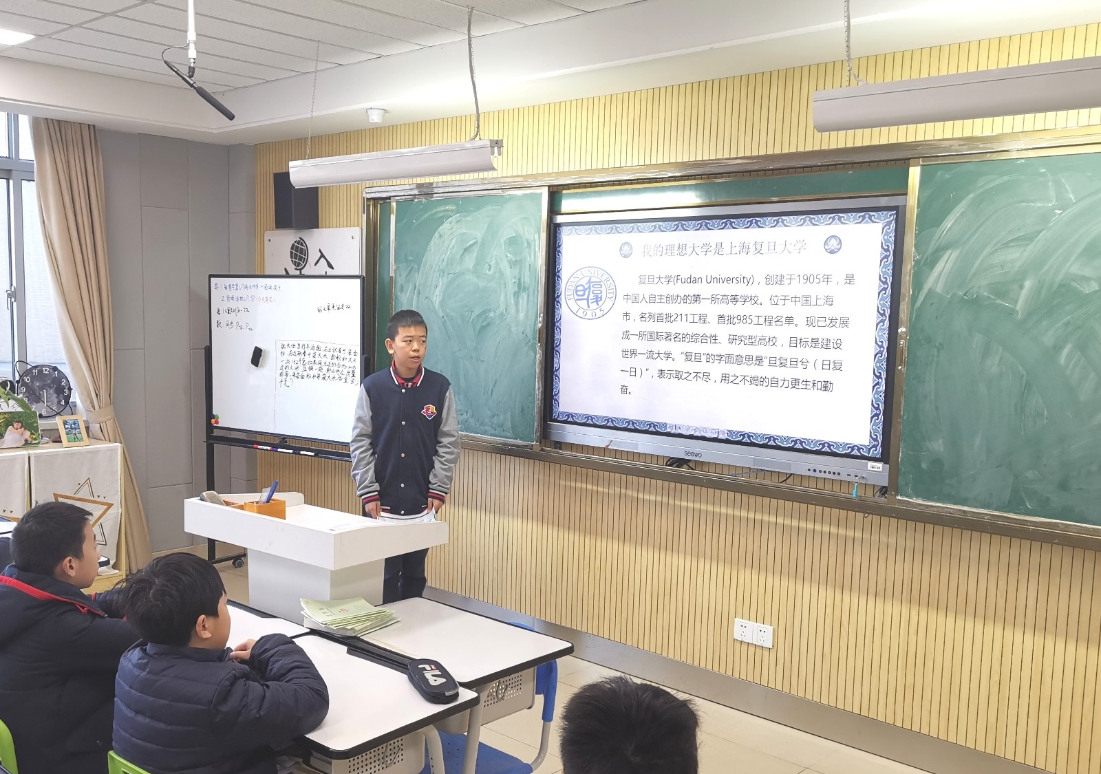 面对即将到来的小升初,六(5)班同学们举行了以“我的大学梦”为主题的晨会,在每个同学的心里都有自己理想的大学,选择这所学校的原因可能是它的综合实力特别强,也有可能是因为单纯被学校的景色所吸引,又或者是因为自己的偶像在这个学校学习过,但是不管原因如何,既然有了理想和目标,就要想办法去实现它!今天王宇凡同学分享了他的大学梦是复旦大学