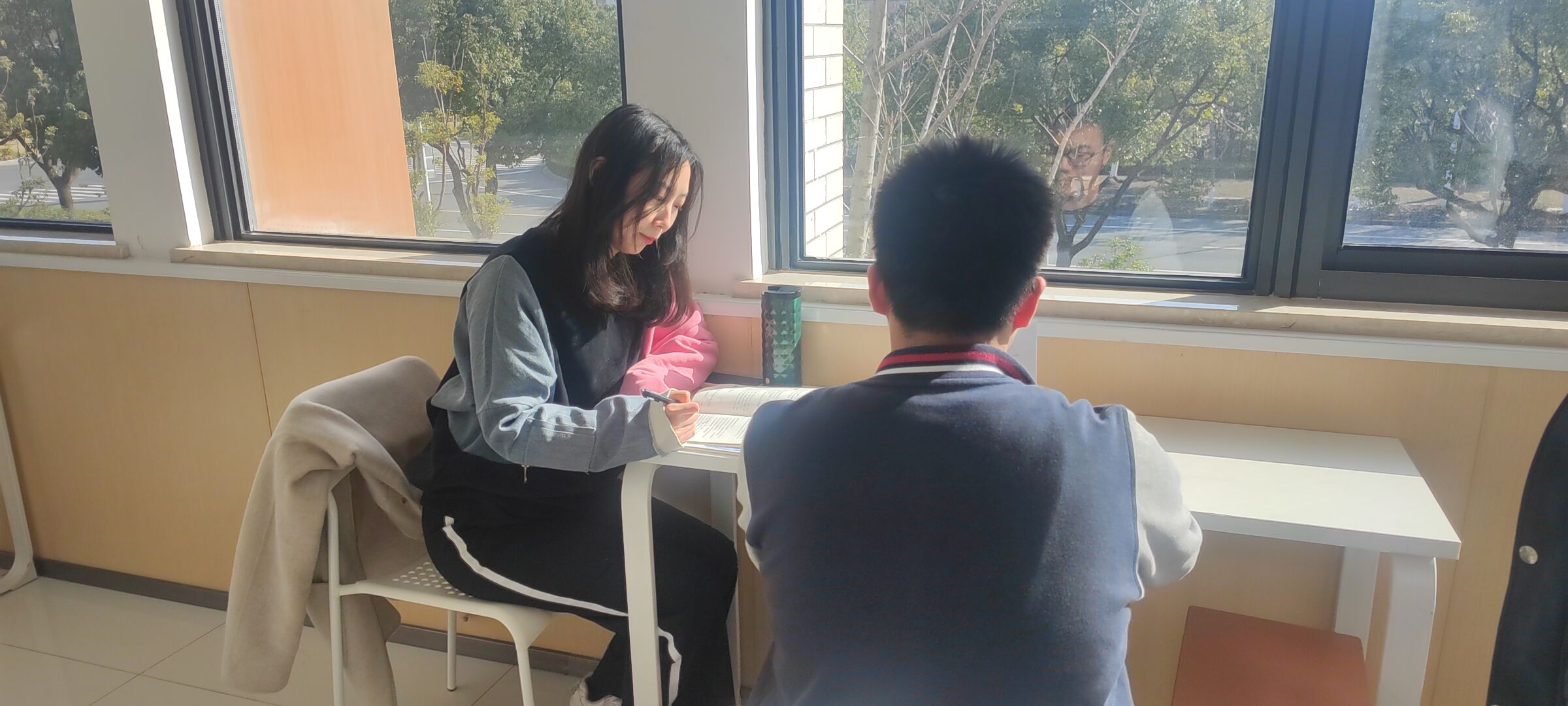 走廊内外,老师们在孜孜不倦辅导学生,日光从窗户洒下,定格学生汲取知识的身影,循梦而行,向阳而生。