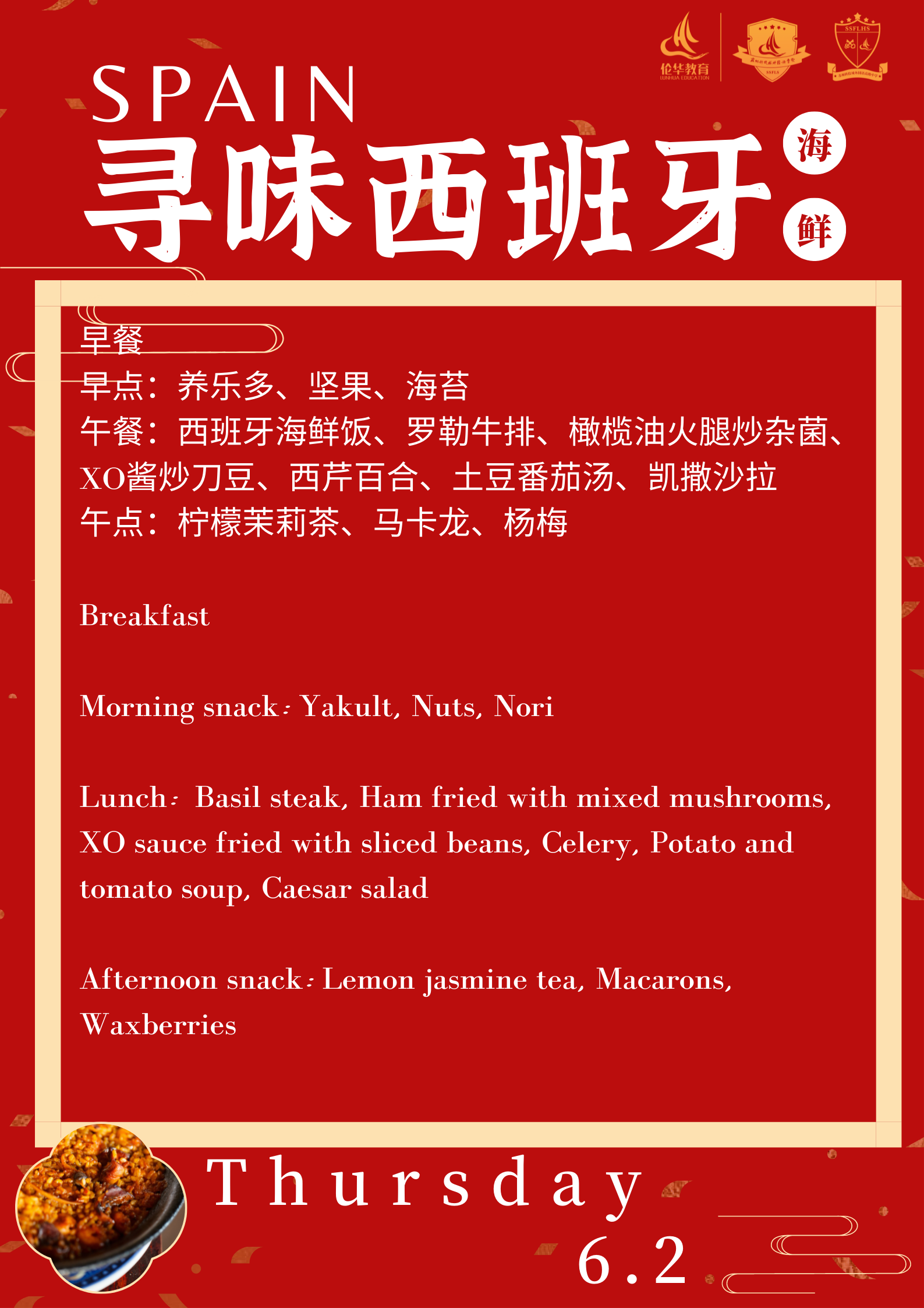 Fusion 2 Depeartment menu for Week 16 融合二部16周每日食谱