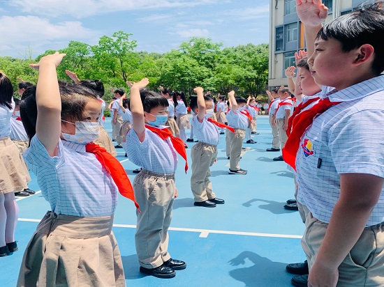 2022年5月,强基融合一年级A班的同学参加了入队仪式。