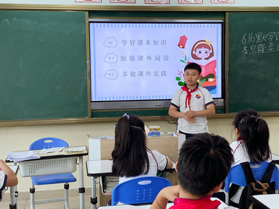 六一班谢宇轩同学就《如何兼顾学习与兴趣》进行了分享,提出无论选择什么样的兴趣爱好,贵在坚持,日积月累,厚积薄发。