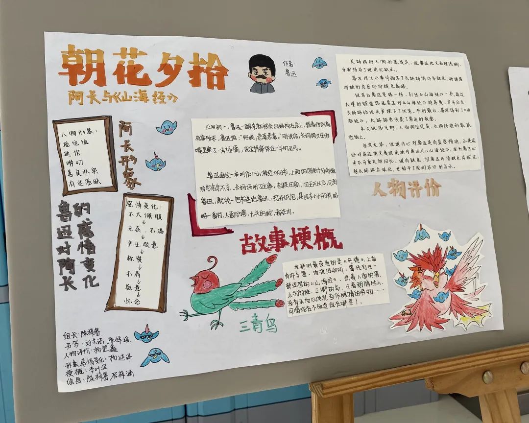 新课标强调:“以生活为基础,以语文实践活动为主线,以学习主题为引领,以学习任务为载体,设计语文学习任务群。”基于此,老师带领学子们一起围绕“鲁迅专题”进行整本书阅读,认识不一样的鲁迅。为“鲁迅的童年”、“鲁迅笔下的人物”制作思维导图,自创自导自演课本剧《三味书屋》《孔乙己》。