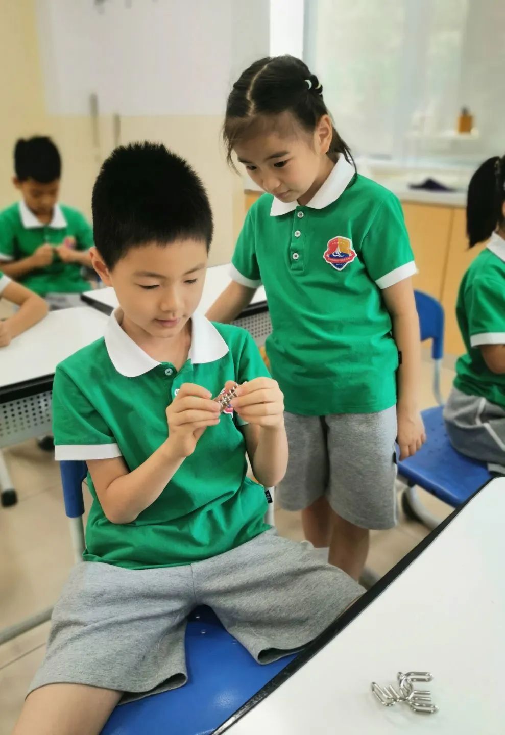 五彩缤纷的超能夏令营在美好的七月如期而至。趣味思维课程每天在班级里都能掀起头脑风暴,我们学习了国际数棋,数独,九连环和孔明锁。国际数棋是思维的体操,妙趣横生,让我们忘记了时间,自主约上伙伴,在棋盘边凝神思考。 —— 五年级 王泓焱