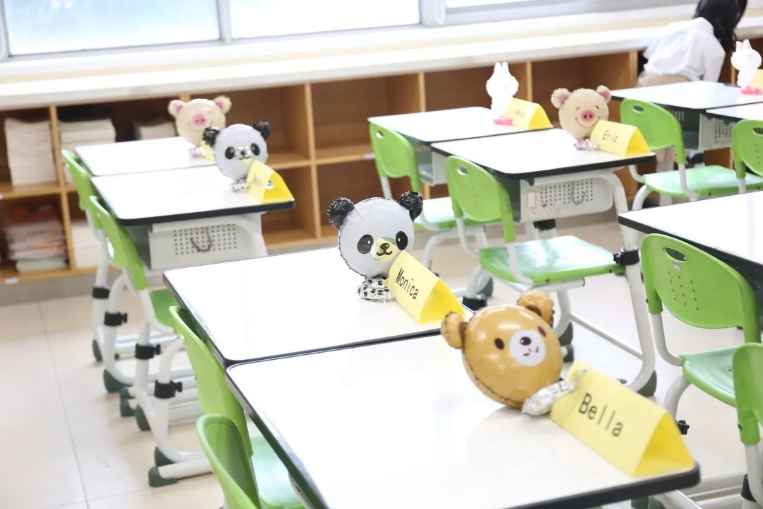 窗明几净的教室,被老师们装点得漂亮又温馨。无论是一捧气球还是一盆鲜花,点点滴滴的细节,都能看出老师对学生们的细心与爱心。
