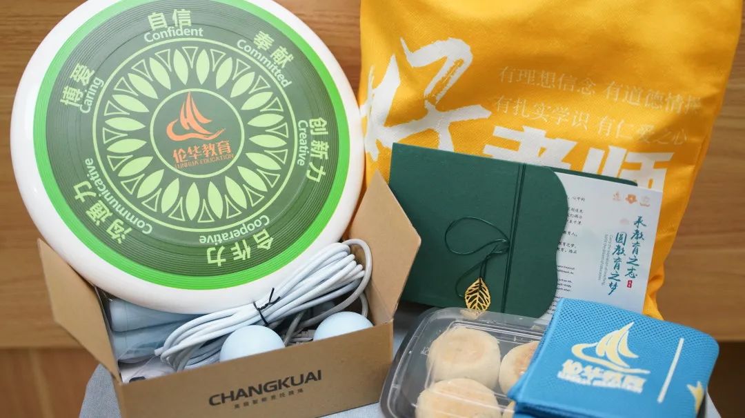 总校长曹伦华先生带领校长团队,将一份份运动礼包送到每一位老师的手中,摆放在办公桌上,给予老师们润物细无声的关爱。希望老师们在繁忙的工作之余,加强运动锻炼,保持身体健康,以更加充沛旺盛的精力投入到教育教学工作中去,礼袋中的月饼也寄语老师们月圆人团圆,幸福美满。